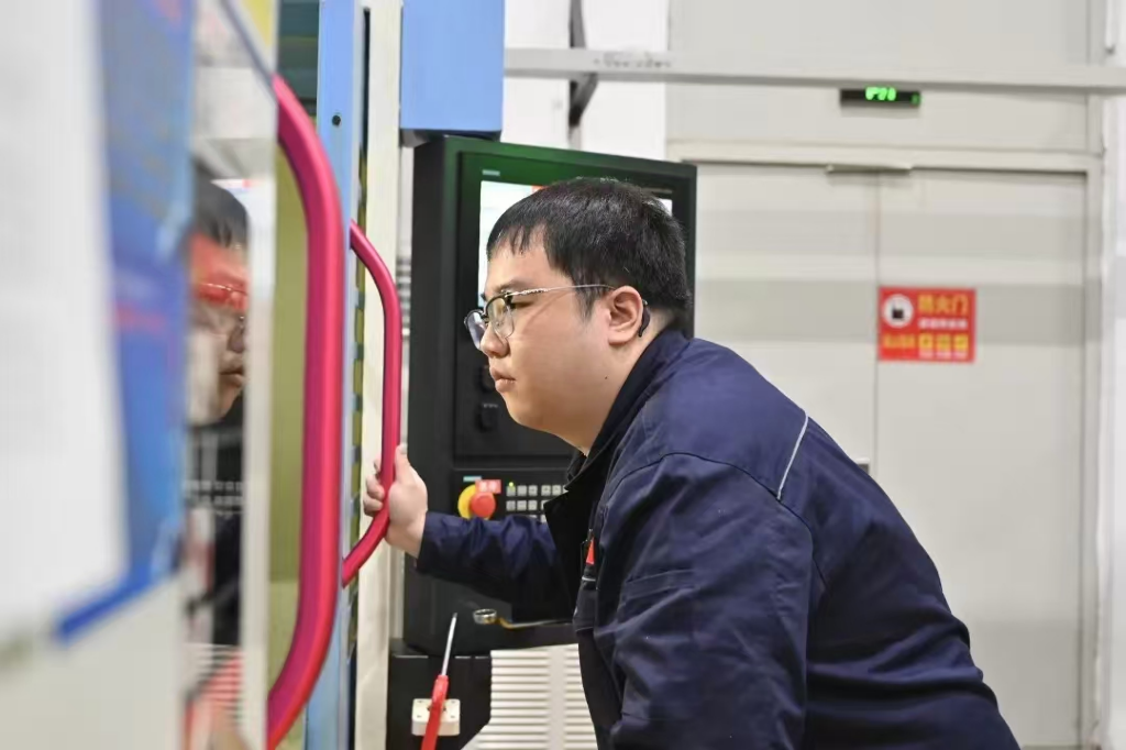 车间里,机床准时轰鸣,他换上工装,俯身、调试、启动……